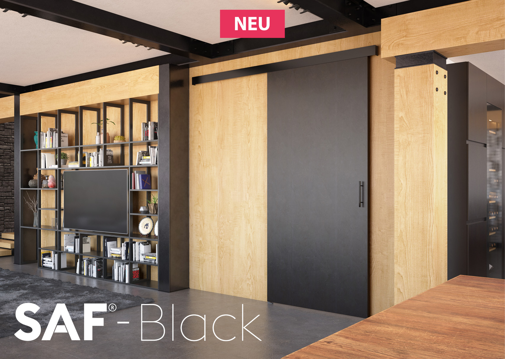 Das Schiebesystem SAF-BLACK vereint Eleganz und Effizienz. Mit seinen schwarz lackierten Aluminiumblenden fügt es sich harmonisch in jede Inneneinrichtung ein und bietet gleichzeitig eine vereinfachte Installation und einen reibungslosen Betrieb.