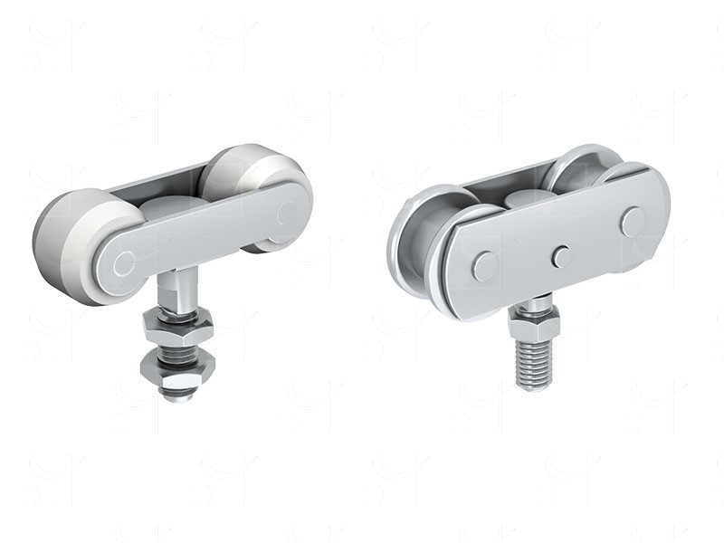 Swivelling hanger with adjustable height, Delrin wheels, Ø M10 screw.