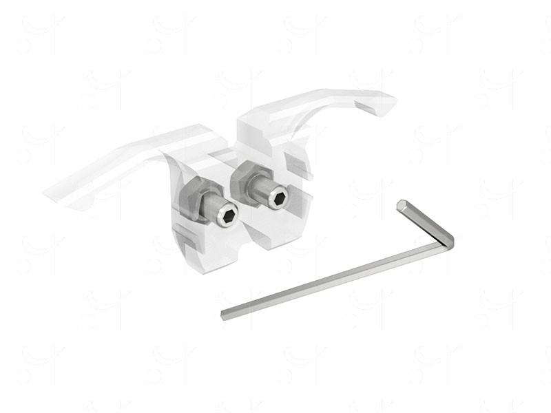 Kit for two end stops with panel position holding mechanism, delivered with fastening tool.