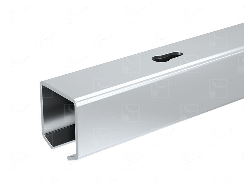 Galvanised steel track, 27 x 24.5 mm, thickness = 1.5 mm, drilled and countersunk every 110 mm. Length = 3 m.