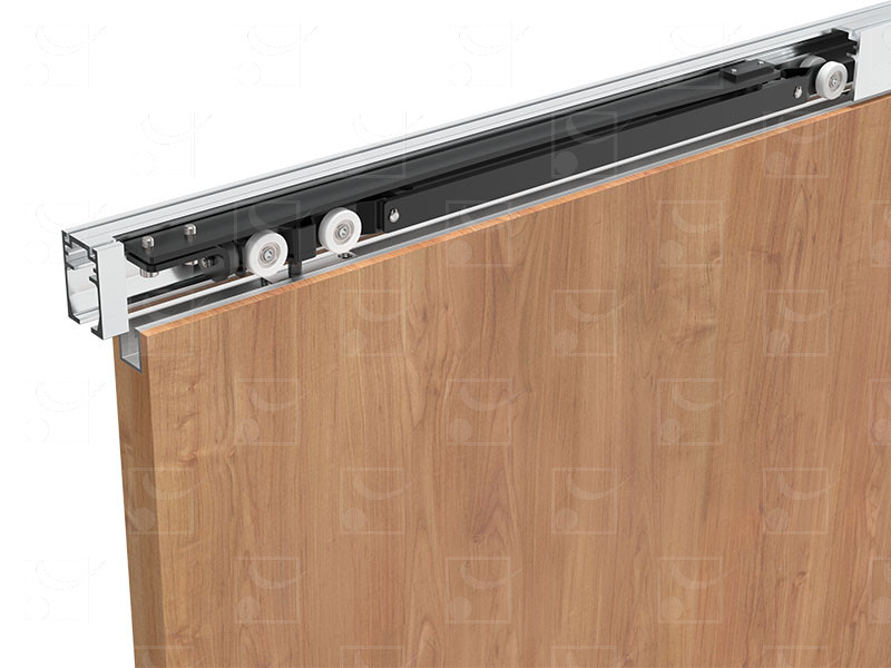- Fijación con perfil empotrado para una distancia mínima entre carril y puerta de 7 mm.