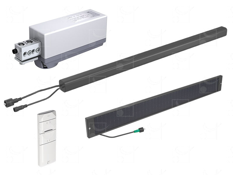 Kit de motorización solar (alimentación 12 V CC), con mando inalámbrico compuesto de: