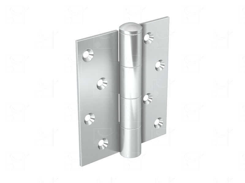 Charnière réglable en acier zingué 30/10è. Dimensions : 120 X 100 mm. Axe acier de 14 mm de diamètre. Fixation sur plat.